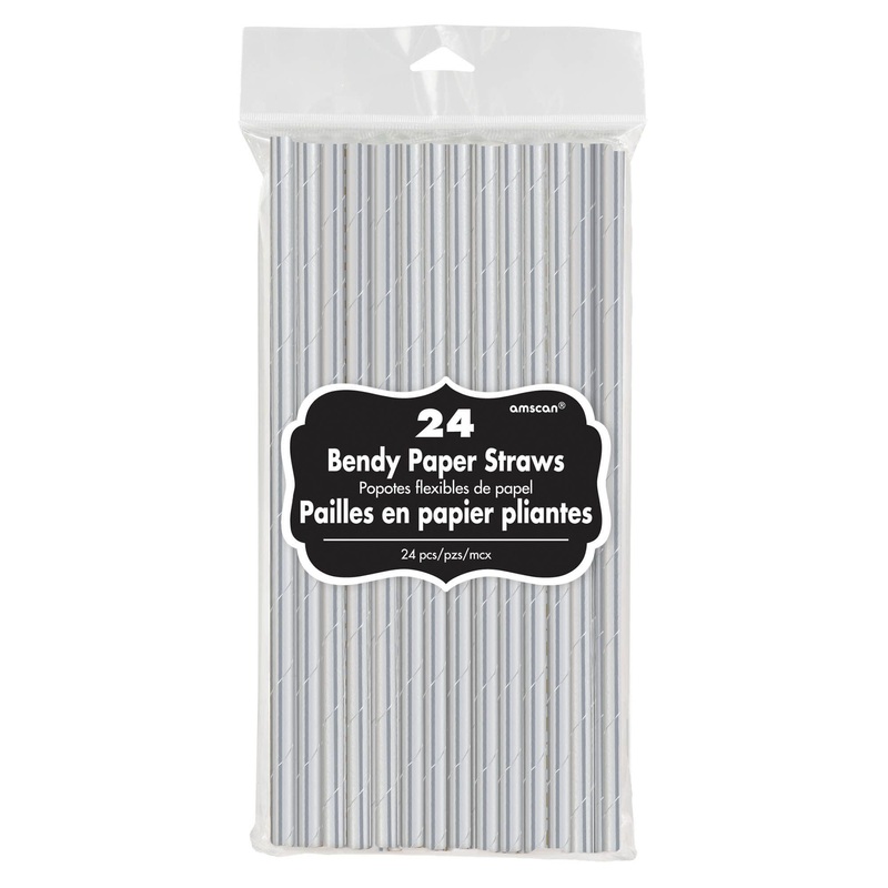 Paquet de 24 paille en papier 7,75″X0.25″ de couleur argent. Idale pour tout type d’vnement.