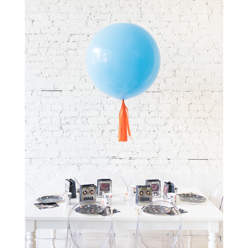 Pale Blue Giant Balloon and Orange Skirt Centerpiece