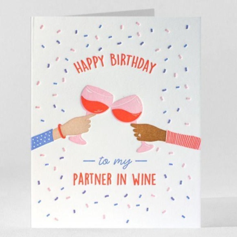 Everything's better with a glass of wine. Wish the happiest birthday to your BFFwho gets better with age & will be by your side sip after sip!Front Greeting: Happy Birthday to My Partner in WineInner Greeting: Hope it's totally amazing!A2 size card (4.25"