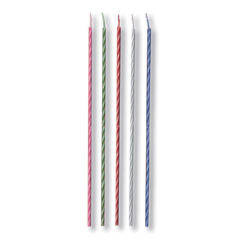 These Party Candle Two Tone, 8″ candles are perfect for adding a festive touch to any birthday celebration. Each candle is made of wax and measures.25″ x 8″. The striped design comes in assorted colors, making it easy to match with other solid color party decorations. With a package of 20, you’ll have plenty to light up your cake and make it look amazing. These candles are great for event planners, caterers, and home hostesses alike. Get creative and use them to decorate your birthday party decorations and accessories. Make your celebration one to remember with these Party Candle Two Tone, 8″ candles.
