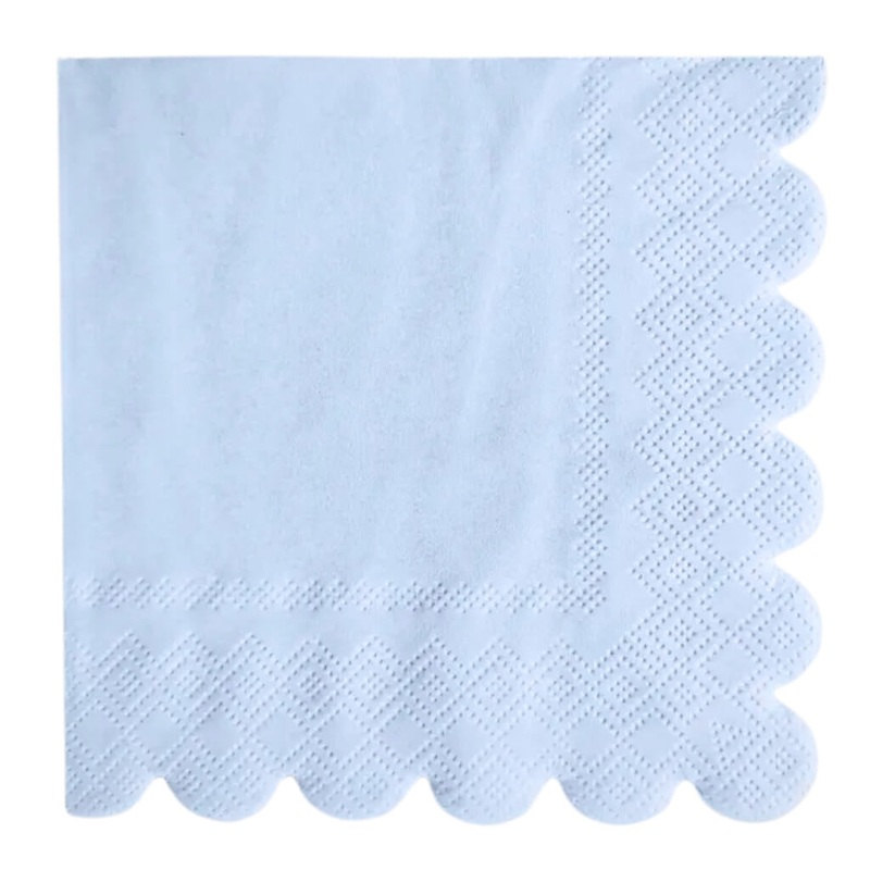 Pack of 10 Pastel Blue Scalloped Edging Paper Napkins Elegant and Functional Party Napkins.Bring a sophisticated touch to your event with these Pastel Blue Scalloped Edging Paper Napkins. Featuring a soft pastel blue colour with scalloped edges, these disp