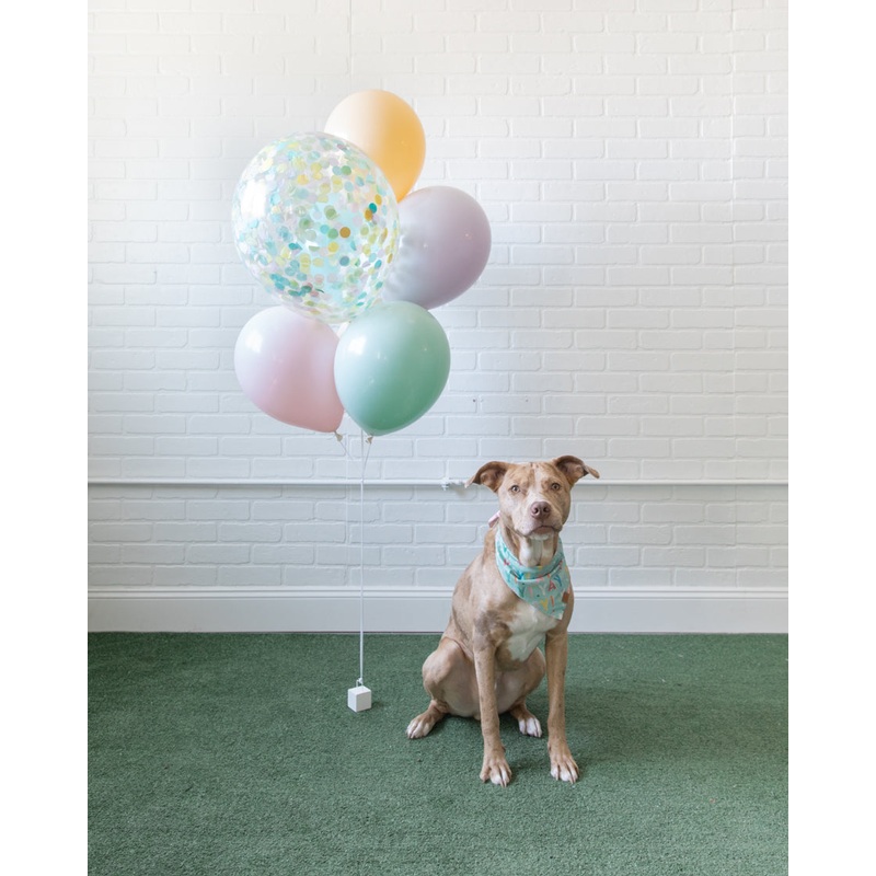 This helium-filled balloon bouquet includes bright balloons and matching confetti to add fun to any sweets table or backdrop.