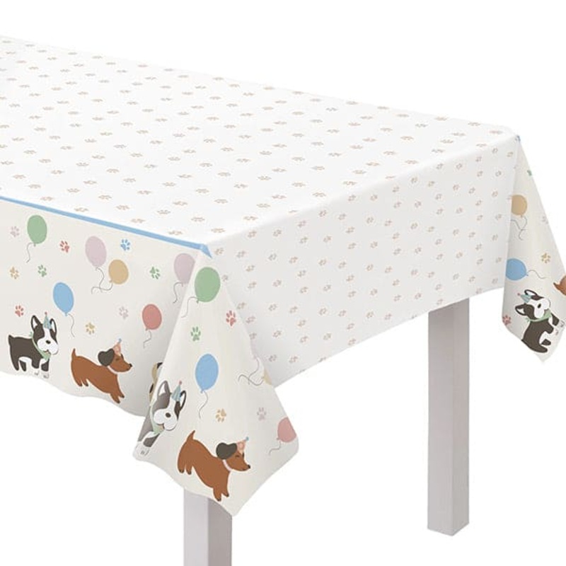 Protect your party table from spills and more with this cute all over print plastic table cover that features party dogs, balloons and paw prints. The table cover coordinates with Pawsome table ware and decorations.