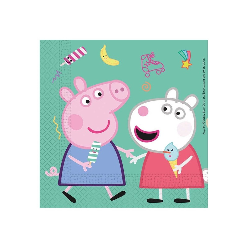 Pack of 20 licensed Peppa Pig party 2 ply napkins.