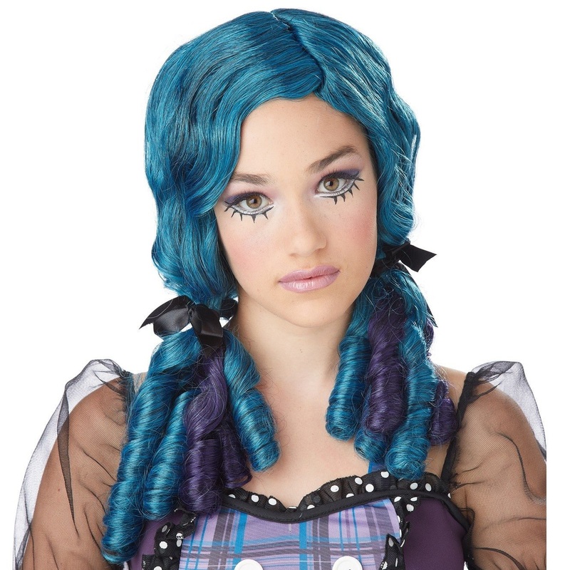 Une coiffure dlicieusement poupe avec des boucles de couleur sarcelle et violette.