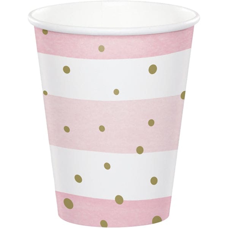 Pink & Gold Celebration 9oz Paper Cups 8ct