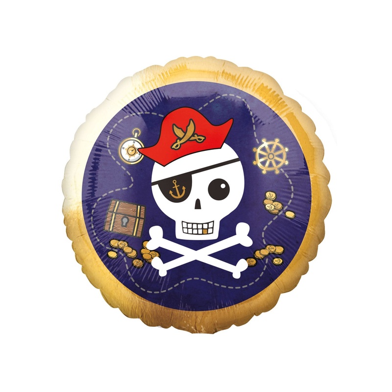 Skull and Crossbones gold and royal blue pirate themed party 17" round foil balloon.Click & Collect orders: Balloon supplied inflated with helium.Delivery orders: Balloon supplied deflated.Balloon comes with a plastic weight or choose a foil weight here. W