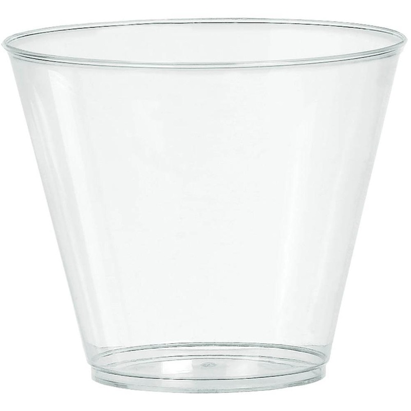 Plastic tumblers don't necessarily mean poor quality! Our high quality clear tumblers are reusable and won't break when dropped! 20 per package Contains 9 oz