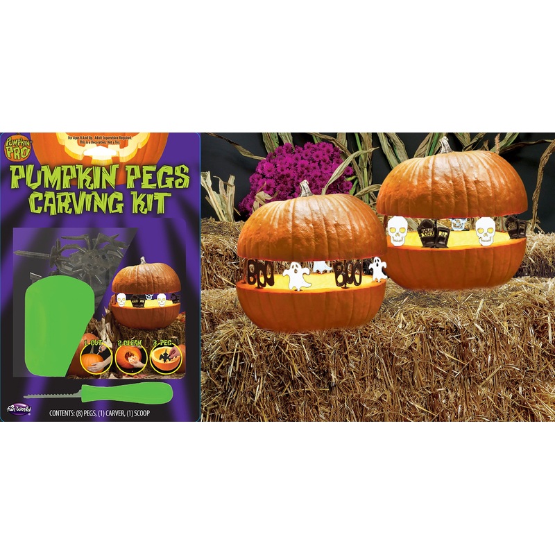 To make your Halloween pumpkin even more decorative than before use our Pumpkin Pegs Carving Kit which includes a detail knife 8 pegs and a scoop Instructions are also disclosed.