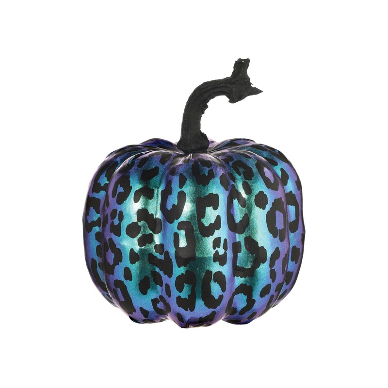 Shimmer design pumpkin Halloween decoration measuring 15 cm by 13 cm.