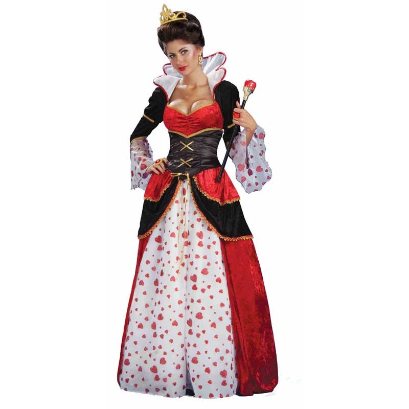 Being queen in our Queen of Hearts Costume allows you to make up the rules about how a proper Halloween costume party should be run This Queen of Hearts Costume will help you be a pretty royal figure with a dress and corset that looks similar to Disneys Queen of Hearts from the Alice in Wonderland movie Additional queenly costume accessories are available and sold separately