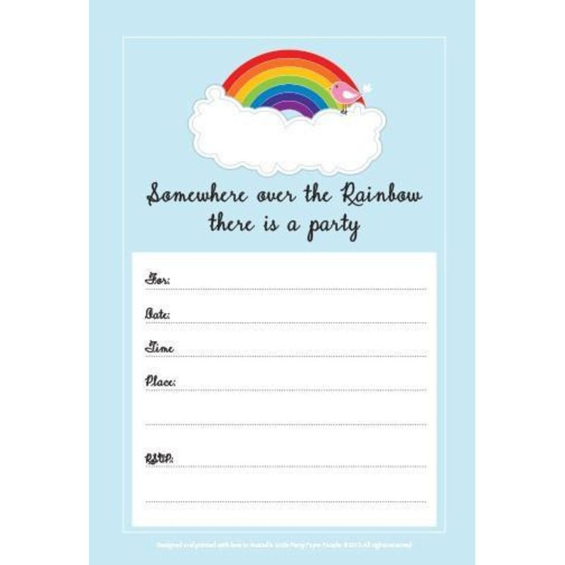 Colour your world with these gorgeous rainbow invitations printed on matt stock.Pack includes 10 invitations and envelopesSize: 11cm x 15.6cm