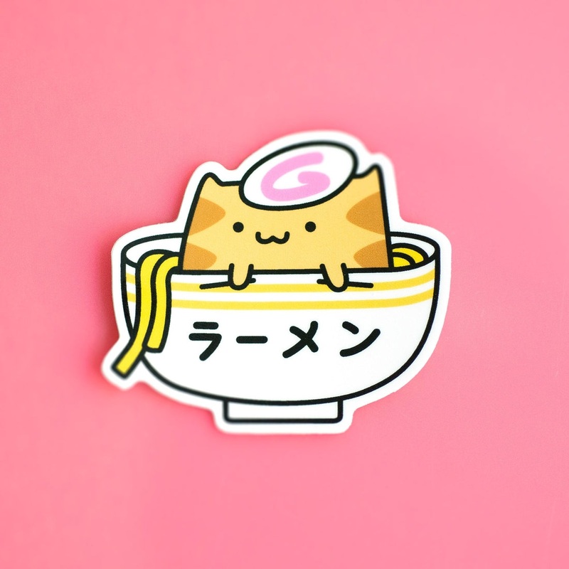 Ramen cat is bathing in a delicious bowl of ramen!Printed on premium vinyl with a UV laminate to protect it from the sun. Great for planners, bullet journals, laptop, water bottles, anywhere!Each sticker is approximately 2.5 x 2.2"