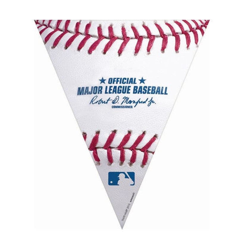 Hit a home run with the classic allAmerican Rawlings Major League Baseball paper tableware and decorations Our Rawlings Major League Baseball Pennant Banner is a 12ft long string with flags that look like the official MLB baseballs with their white appearance red lace and MLB logo prints