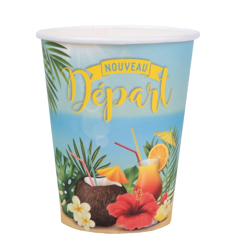 Celebrate the retirement of your special someone with these vibrant and colorful retraite retro “Vive la retraite” party paper cups! Perfect for a retirement party, the beach design will bring a cheerful atmosphere to any event. Enjoy 10 paper cups foryour drinks!