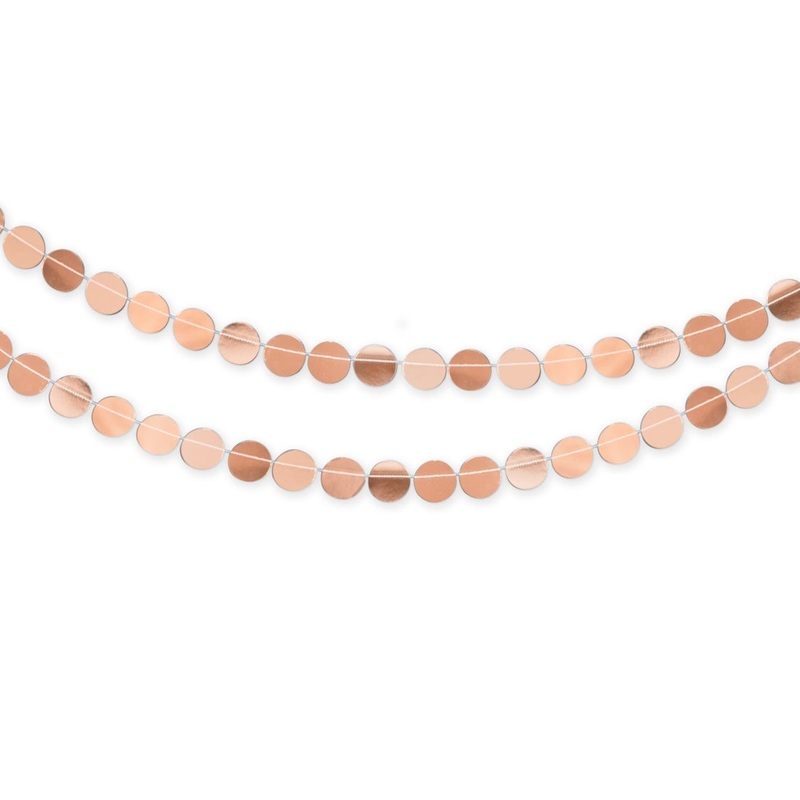 Photo worthy decorations have never been easier to achieve.This beautiful string of rose gold metallic circles is the perfect addition to any party!