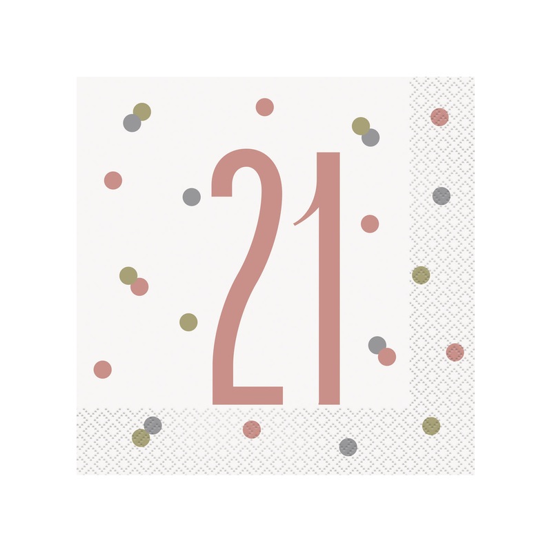 Pack of 16 luncheon 21st Birthday Rose Gold Glitz napkins. 2 ply. 33 x 33cm.