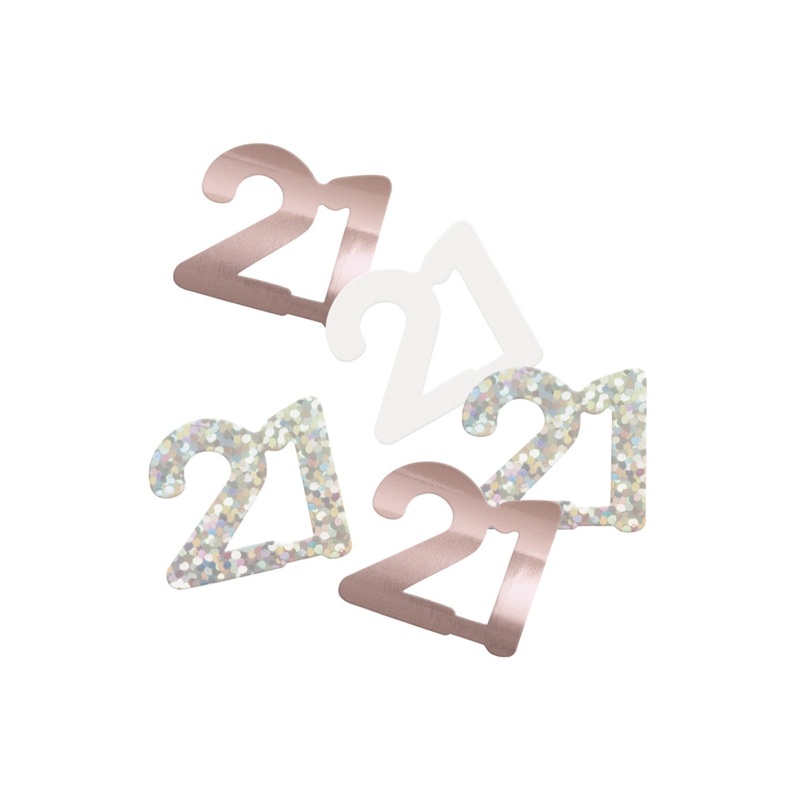 14.1g (0.5oz) pack of rose gold glitz 21st birthday party confetti.