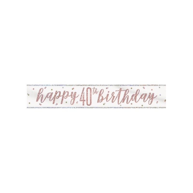9ft / 2.74m long 40thbirthday rose gold Glitz banner printed one side.