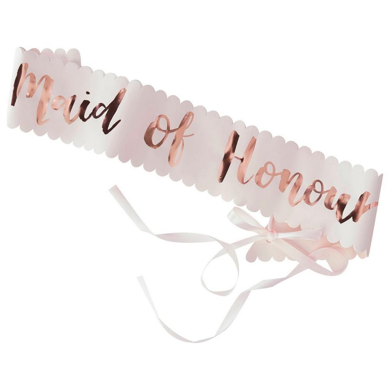 Includes: 1 x ‘Maid of Honour’ Sash + 1 x rose gold ribbon
