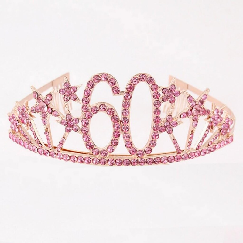 Rose Gold Rhinestone Age 60 Birthday Tiara with Stars Elegant 60th Birthday Headband.Celebrate your milestone in dazzling style with this premium rose gold rhinestone 60th birthday tiara. Crafted from strong, hypoallergenic metal with a smooth rose gold pl